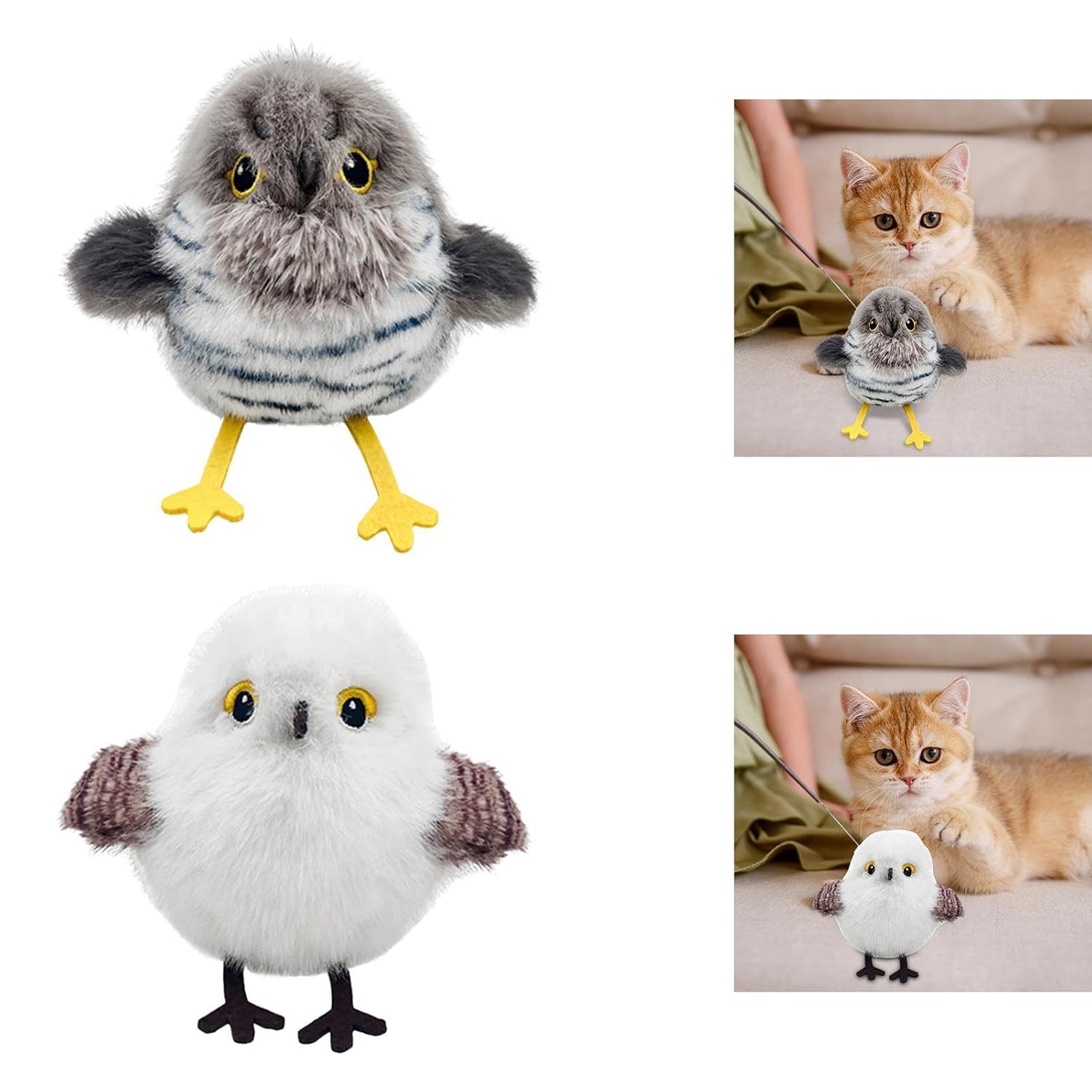 Answer 1: This interactive cat toy features three distinct flapping modes that mimic the erratic movements of a real bird, engaging your cat's natural hunting instincts. It also produces charming chirping sounds to enhance the playful experience. Made from high-quality, durable polyester, it’s designed to withstand vigorous play and is compactly sized to fit in any indoor space without taking up much room.